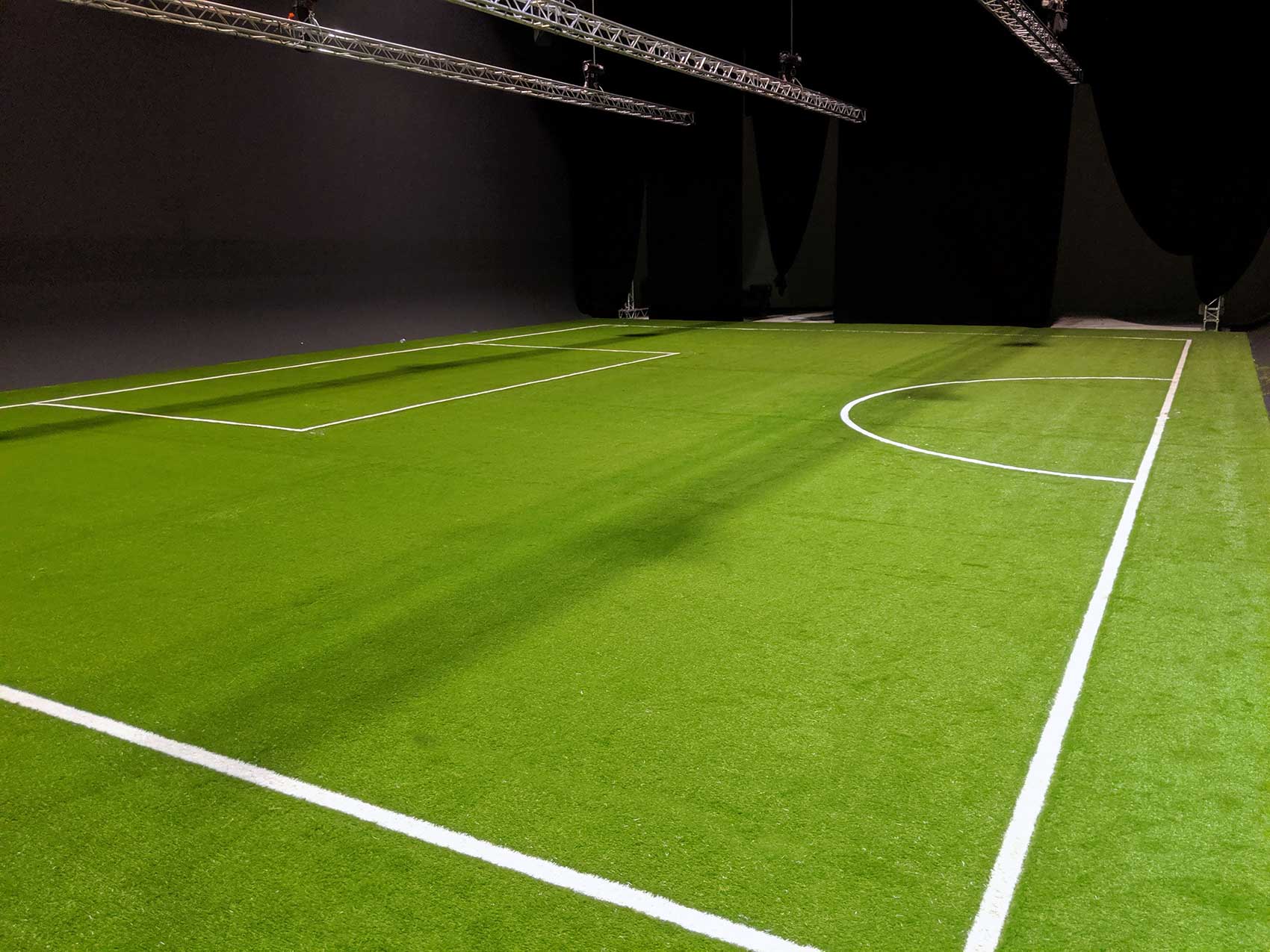 - 3G vs 4G Artificial Grass: It is a common misconception that you need a 3G or 4G artificial grass when filming or photographing football players during action photoshoots. For still and video work, you need a high-quality artificial grass background that looks good on camera under studio lights and is safe to play on. 3G and 4G surfaces require sand or rubber infilling, which is a messy and time-consuming process to both install and remove. Without the infill, the pile height is not maintained, causing the grass to look shiny from one direction and dark from another. Our range of artificial grass offers the best of both worlds, providing a surface that is both safe to play on and looks very realistic under studio lighting.