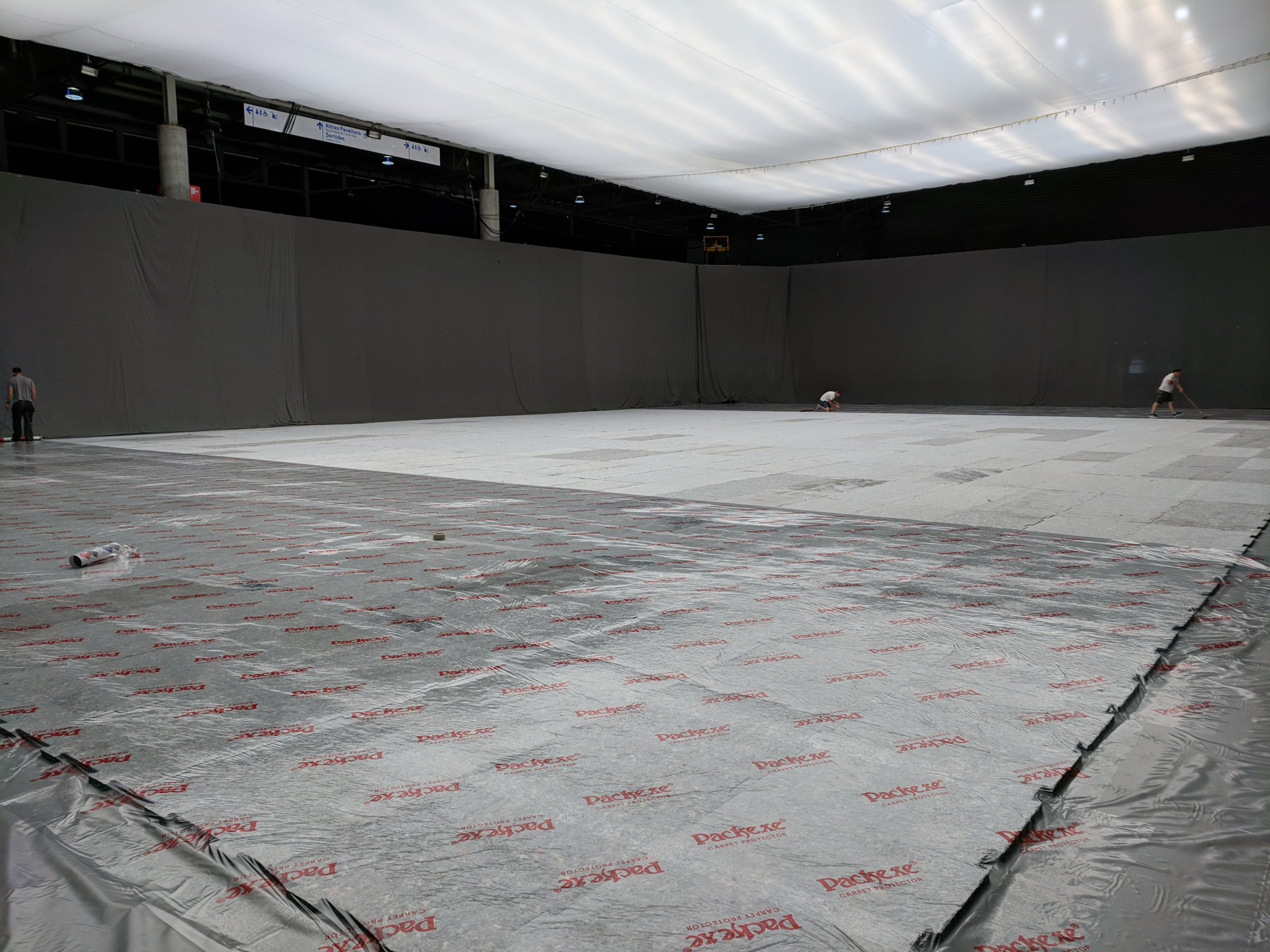 An installation we completed for a Nissan campaign in Madrid and London. This project also included an indoor rain system, Our Underlay protection film help ensure all the excess water moved away to the edges of the area, where it could be wet hoovered away.