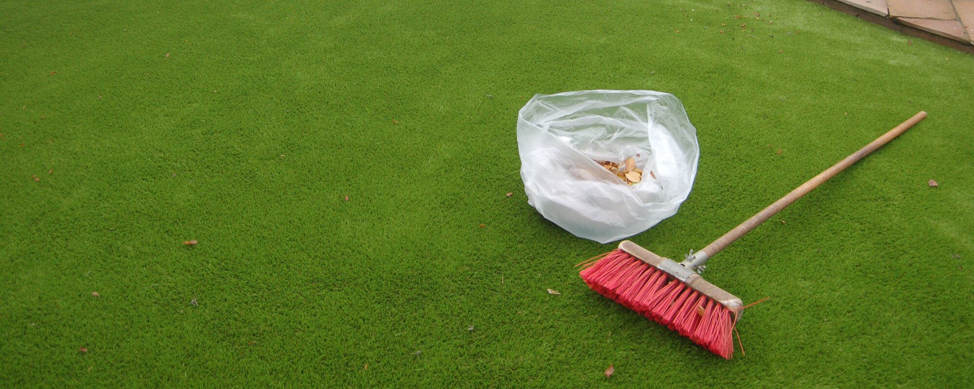 If there is no transfer of dirt or soil, artificial grass is pretty much self-cleaning. However, if the grass needs cleaning, hosing it down using a light detergent and a stiff brush (or a mechanical brush for best results) is recommended.
