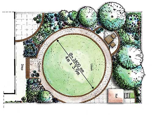 For round lawns, work out the diameter in metres and round up to the nearest even number for the width. This is due to roll widths being 2m or 4m. The length can use the accurate measurement of the diameter.