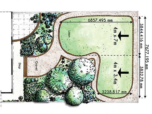 Similarly, if there are obstacles within the lawn area such as a shed, tree, pond, or steps, you still need the same quantity of artificial grass so do not need to take into consideration obstacles when measuring the area.