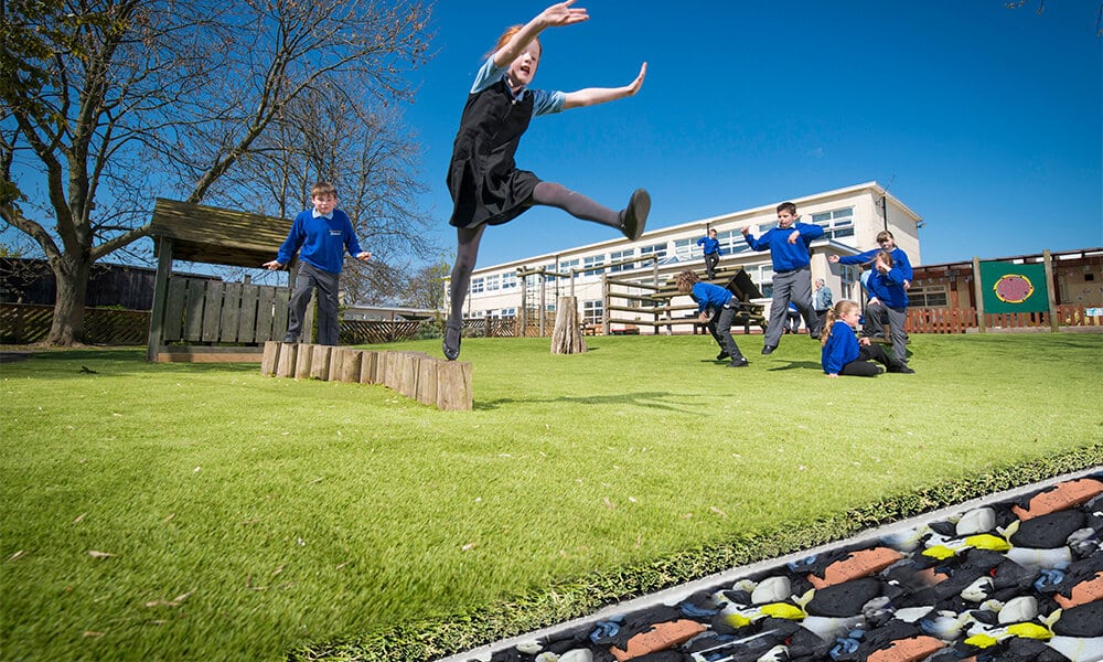 On a play area as a safety surface the 25mm Lazy Pad foam offers a critical fall height of 1.5m (tested to European Standard EN1177) when used with an artificial grass surface such as our leading Wonder Yarn product. If a greater CFH is needed then you can use a double layer of the product. For example when used in conjunction with Wonder Yarn to our groundwork specification, 2 layers = 2.5m CFH.
