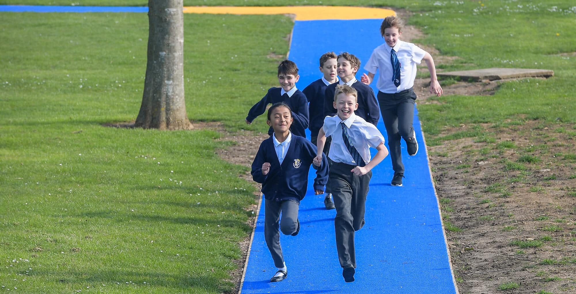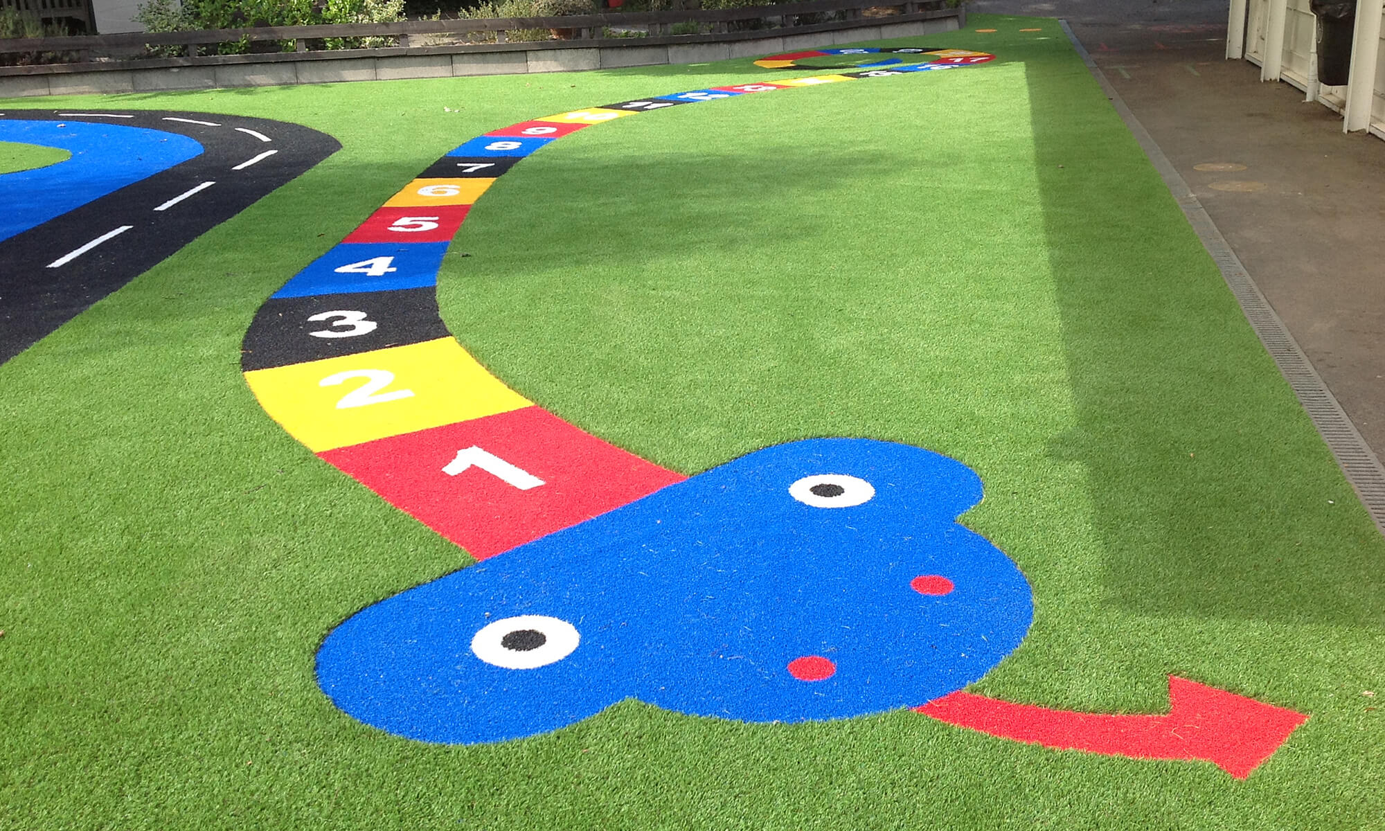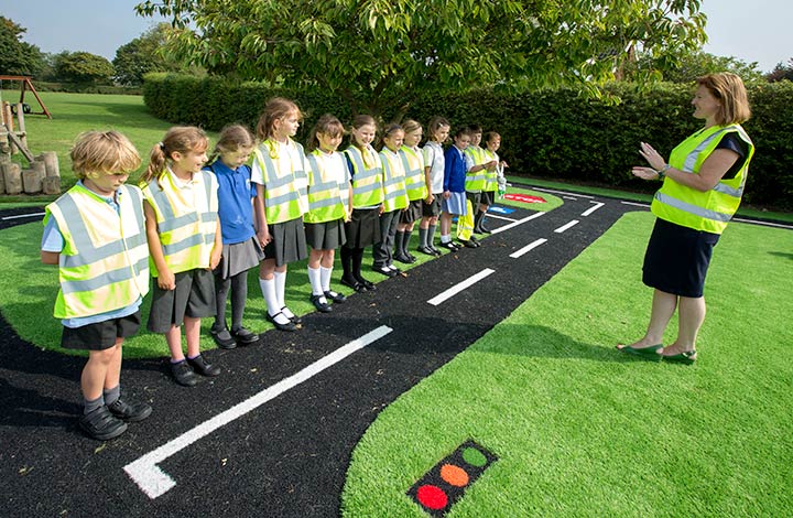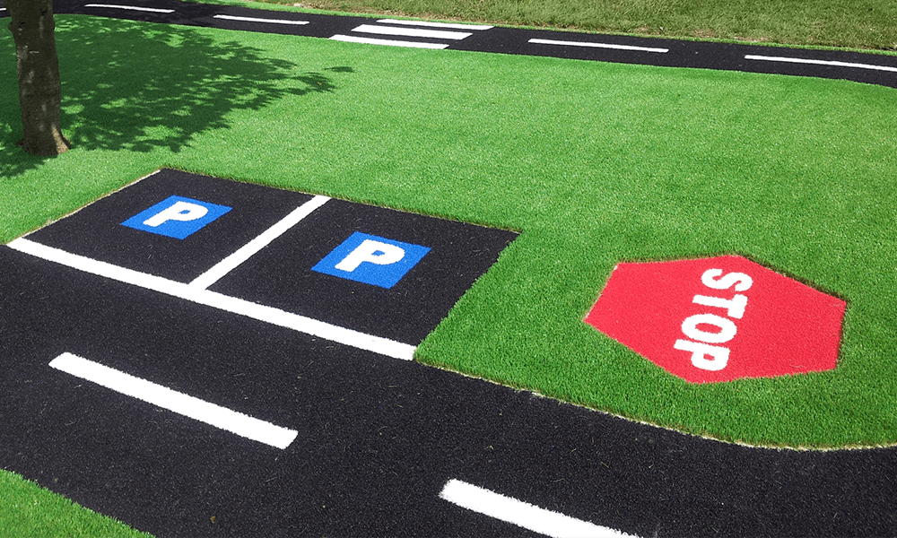 A range of bright-coloured synthetic turf for use in MUGA (multi use games areas), school and nursery playgrounds and cutting & logo projects.